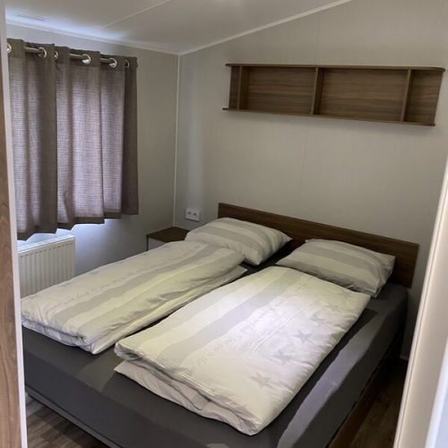 Dit volledig ingerichte chalet is geschikt voor maximaal 4 personen. Dit chalet heeft een ruime woonkamer met open keuken. De woonkamer beschikt over een flatscreen tv. De open keuken is voorzien van een 4-pits gasfornuis, vaatwasser, magnetron en koffiezetapparaat. De badkamer is voorzien van een douche en toilet. Er zijn twee slaapkamers waarvan één slaapkamer met een tweepersoonsbed en één slaapkamer met twee éénpersoonsbedden. Er zijn openslaande deuren die uitkomen op het terras. Buiten op het terras heeft u de beschikking over tuinmeubilair.