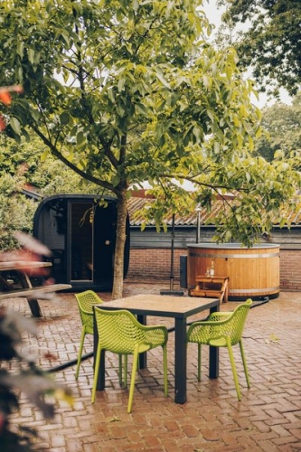 De buitenruimte van deze luxe groepsaccommodatie is net zo indrukwekkend als het interieur. Je hebt toegang tot een omheinde tuin, die zorgt voor volledige privacy en een veilige omgeving voor je groep. De tuin is uitgerust met een comfortabele loungeset en tuinmeubels, perfect voor gezellige avonden buiten. Of je nu ontspant met een drankje, een goed gesprek hebt of gewoon van de frisse lucht wilt genieten, deze buitenruimte biedt de ideale setting.