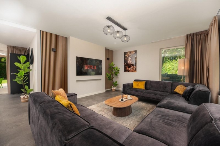Na een dag vol activiteiten kun je heerlijk ontspannen in de woonkamer, die is ontworpen voor ultiem comfort. De woonkamer is uitgerust met airconditioning, centrale verwarming, een sfeervolle haard, een flatscreen TV en gratis wifi. Hier kun je samen genieten van een film, een goed gesprek of gewoon ontspannen na een avontuurlijke dag.
