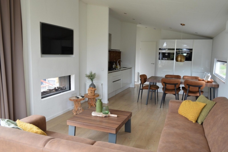 Deze accommodatie beschikt over een gezellige living met open keuken. Vanuit de woonkamer kunt u naar de slaapkamers. Er zijn in totaal 2 slaapkamers (2 eenpersoonsbedden, 1 stapelbed en 1 eenpersoonsbed). Vanuit uw bed in de masterbedroom kijkt u heerlijk tv. Verder is er op de begane grond een badkamer met wastafel, inloop regendouche een bubbelbad en een apart toilet.