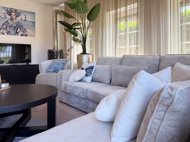 Deze royale villa biedt ruimte en comfort voor een gezelschap van acht personen. Binnen vind je een sfeervolle woonkamer met flatscreen tv en een compleet uitgeruste keuken met o.a. combimagnetron, vaatwasser, koelkast met vriesvak en koffiezetapparaat. De villa beschikt over vier comfortabele slaapkamers, elk met luxe boxspringbedden.