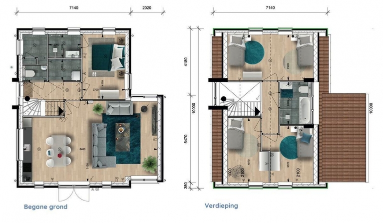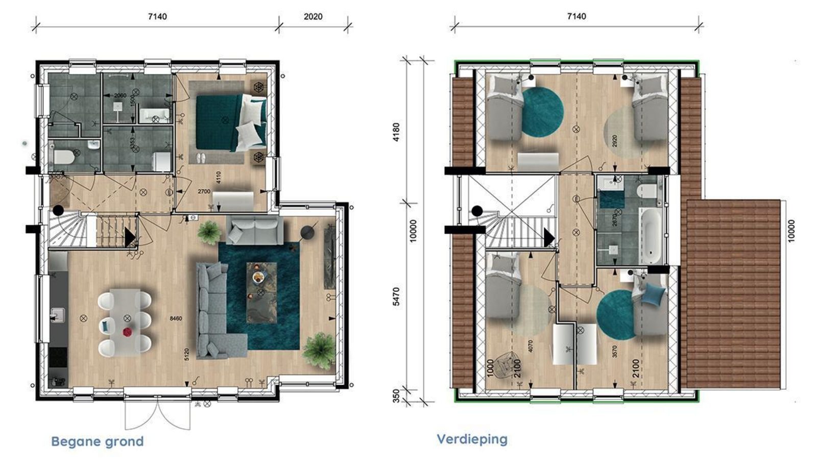 • 2 slaapkamers met twee 1-persoons boxsprings