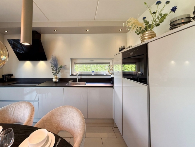 De villa ligt op een rustige plek aan de rand van het park, omgeven door groen en vlak bij het water. De tuin is ruim opgezet en voorzien van een gemeubileerd terras waar je in alle privacy geniet van je wellnessfaciliteiten. Dankzij de beschutte ligging en het uitzicht op de natuurlijke omgeving ervaar je hier het echte buitenleven.